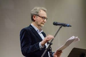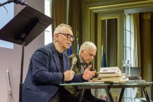 Première table ronde. Le propos est introduit à la fois par Martin Rueff et par Francesco Delfini. Ce dernier est un grand lecteur de poésie qui apprécie la diversité et les singularités de la poésie dans le monde. Une de ses tantes écrivait de la poésie et a été préfacée par Mario Luzzi. Il a bien connu aussi Bernard Simeone, immense traducteur disparu prématurément à 44 ans en 2001. Martin Rueff parle lui de la revue Po&sie, de son numéro spécial poésie italienne. Et de Montale, prix Nobel, qui avait posé, sur un mode ironique, la question de savoir si la poésie était encore possible (È ancora possibile la Poesia ?)